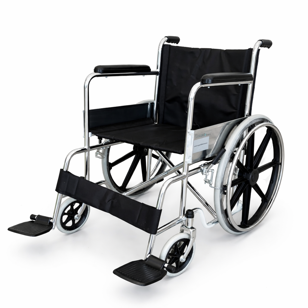 Las sillas de ruedas manuales Saikang están diseñadas para brindar movilidad, comodidad y seguridad a pacientes en entornos hospitalarios, clínicos o domiciliarios. Fabricadas con una estructura resistente de acero cromado y un diseño funcional, estas sillas son ideales para el traslado y uso diario de personas con movilidad reducida.