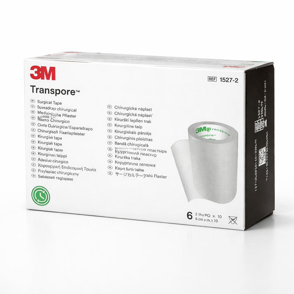 El Transpore™ 1527‑2 es libre de látex, hipoalergénico y suave con la piel, lo que lo hace ideal para pacientes sensibles, usos prolongados y aplicaciones repetidas. Su resistencia al agua asegura un rendimiento confiable en entornos clínicos exigentes, quirófanos y áreas de emergencias.